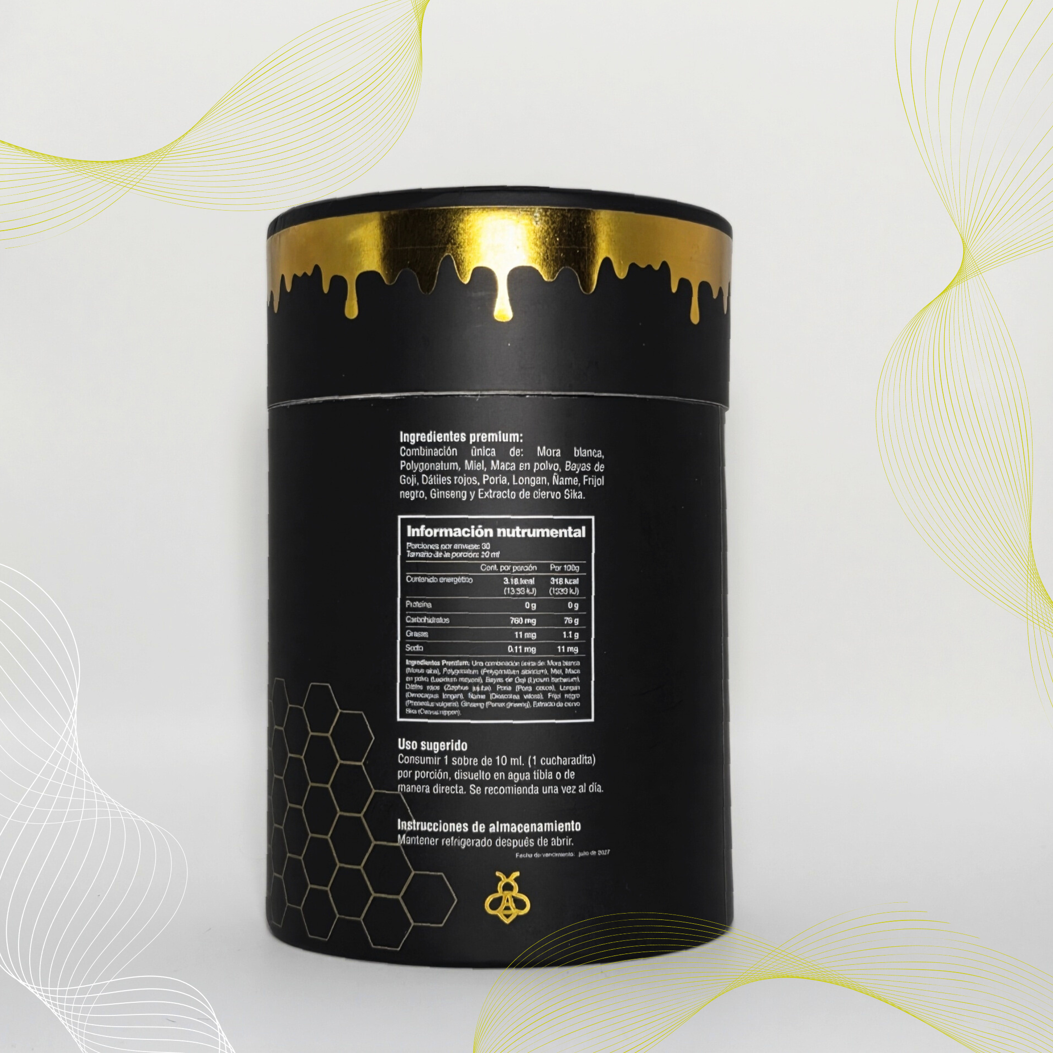 Golden Honey 30X combina miel pura con ingredientes ancestrales que elevan tu energía, enfoque y rendimiento físico sin estimulantes artificiales. Ahora en práctica presentación de 30 sticks, perfecta para llevar, tomar y transformar tu rutina diaria.